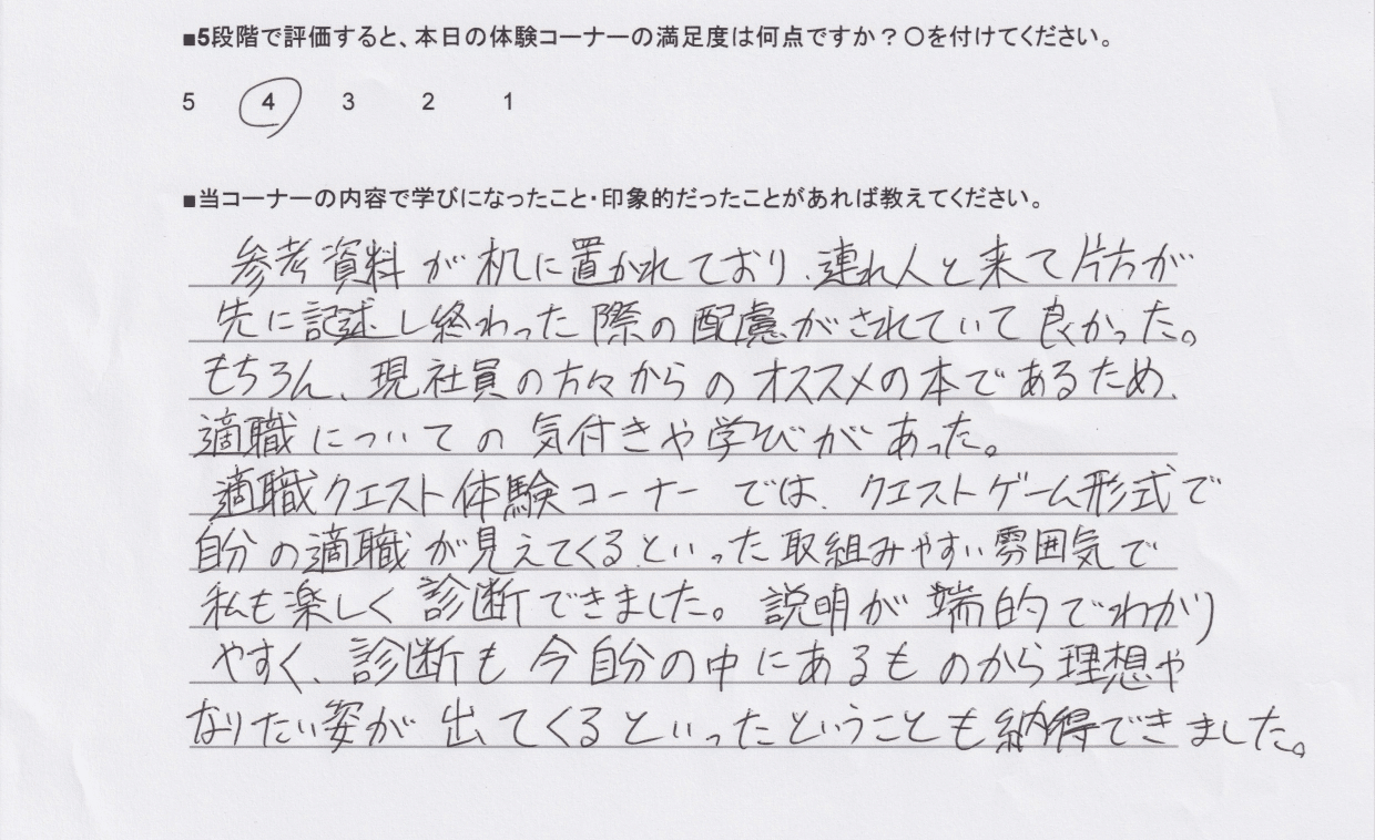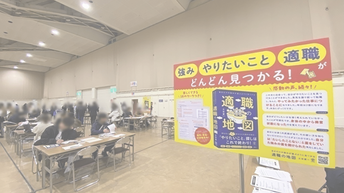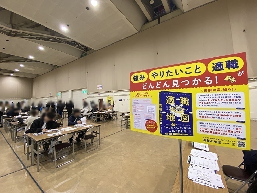 そこで当日は著書『適職の地図』の内容の一部から「適職クエスト体験コーナー」と題し、自己分析をゲーム感覚で楽しんでいただけるブースを出展いたしました。
