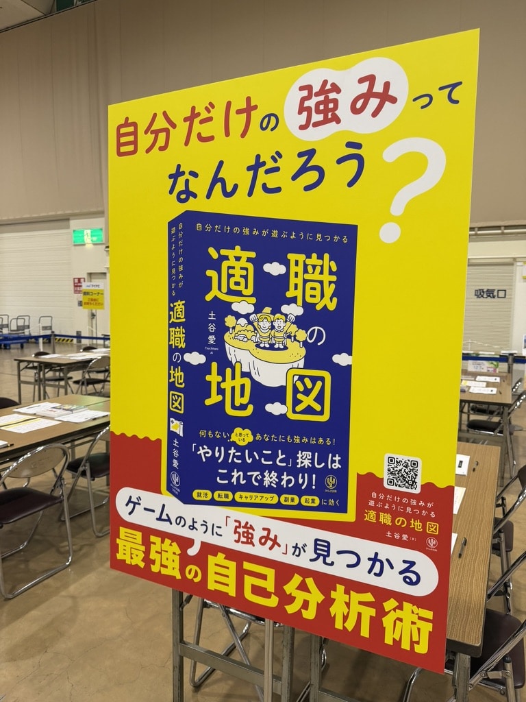 今回、学生のみなさんに楽しんでいただいた「適職クエスト体験コーナー」は、土谷の著書である『自分だけの強みが遊ぶように見つかる 適職の地図』の内容をもとにしています。